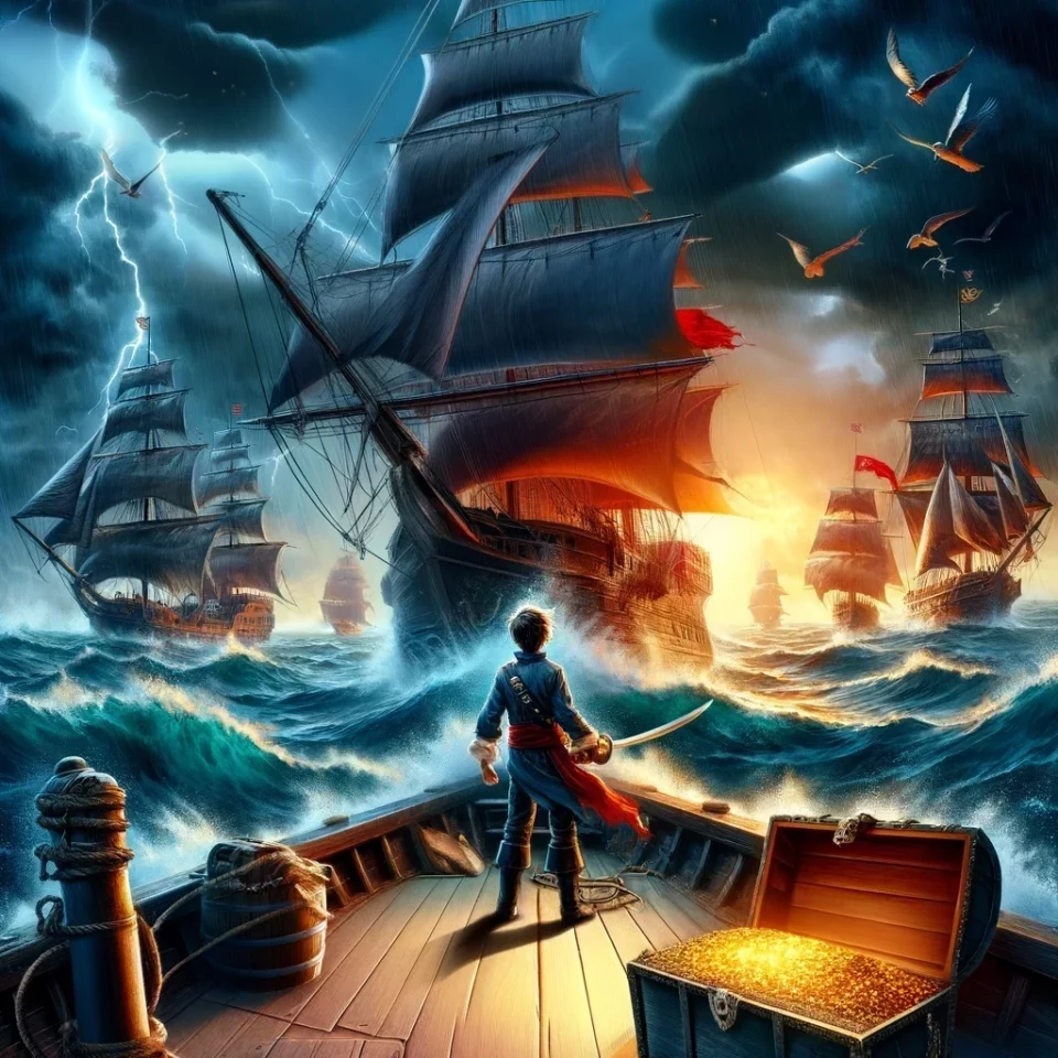 - Aventuras como grumete: Narra las primeras experiencias del protagonista como grumete en un barco. Le enseñan a manejar las velas, luchar y a enfrentarse a los desafíos del mar. A través de estas pruebas, comienza a forjar su carácter como marinero.